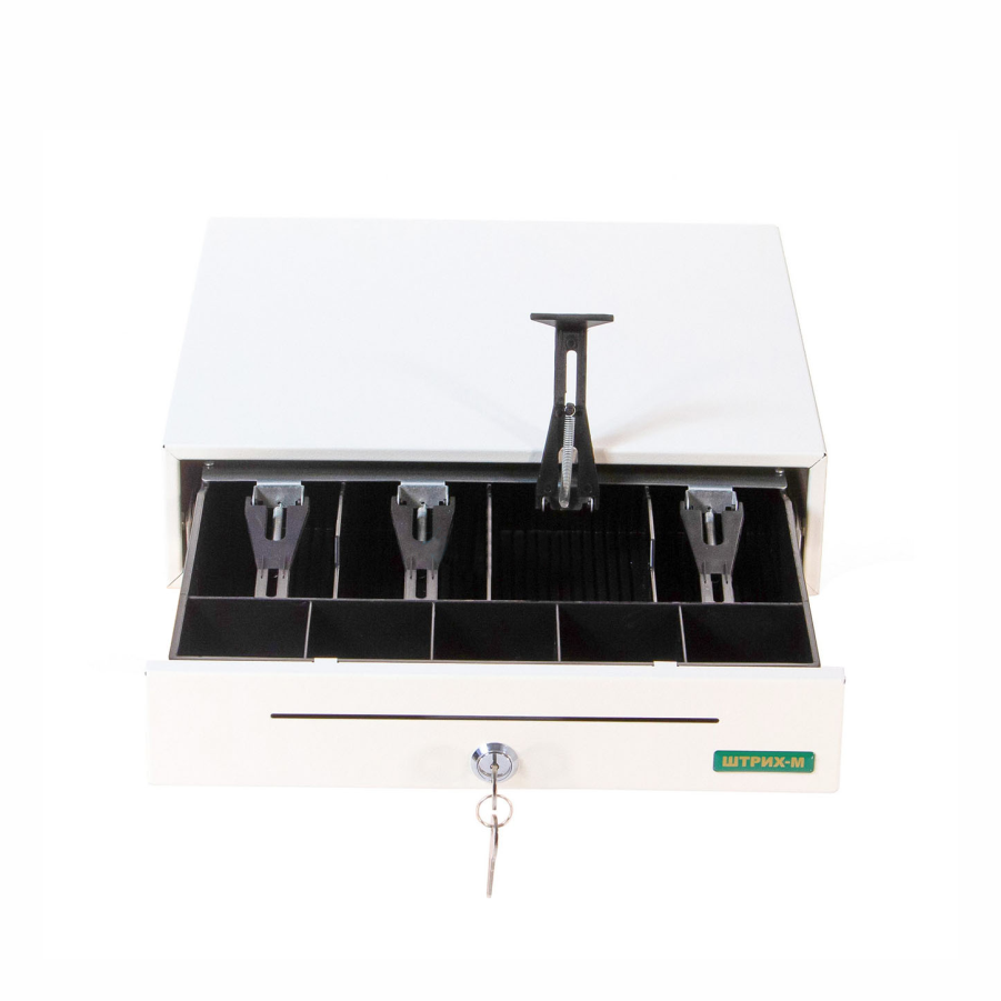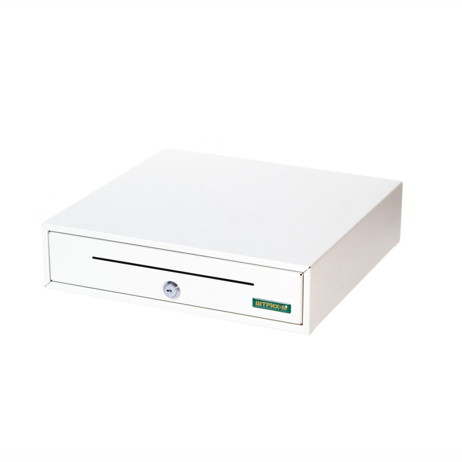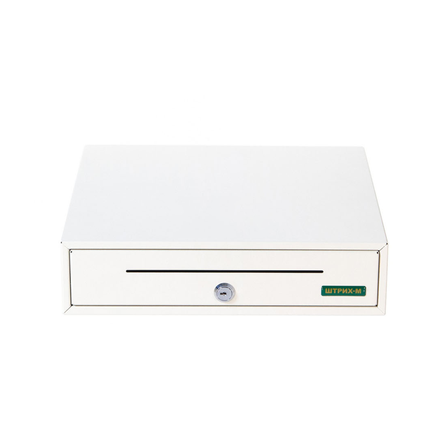 • Корпус денежного ящика выполнен из металла и выкрашен в белый цвет.